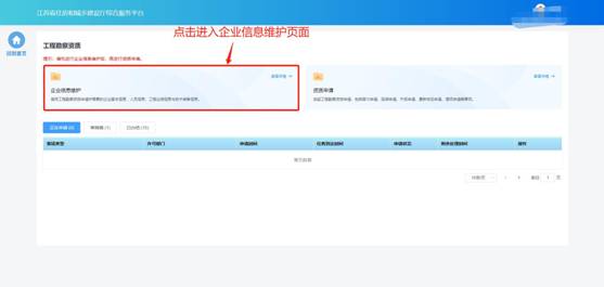 企業需要先進行企業信息維護,才可進行資質申請。點擊工程勘察資質功能模塊頁中“企業信息維護”進入企業信息維護頁面。