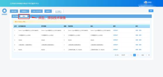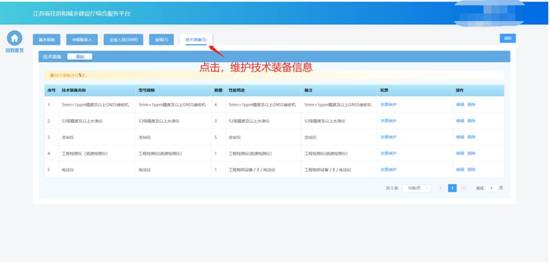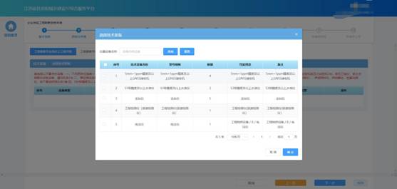 若申請的資質對于技術裝備有要求,則申報流程會包含“技術裝備”環節。在“技術裝備”環節頁面,企業按照所申請資質類別分別選擇對應的技術裝備。點擊“選擇技術裝備”按鈕,選擇用于本次申報的裝備。