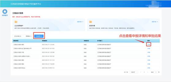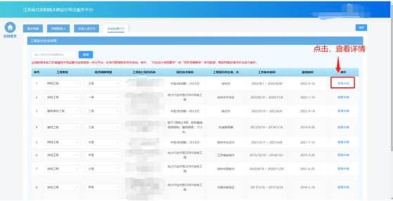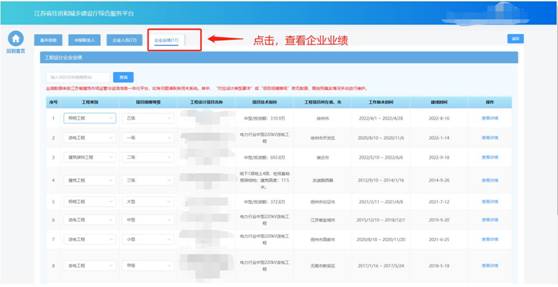 在企業業績頁面中查看企業工程業績信息。目前業績數據來自江蘇省建筑市場監管與誠信信息一體化平臺,無需企業手動進行維護。