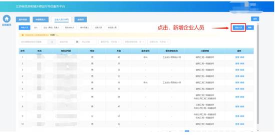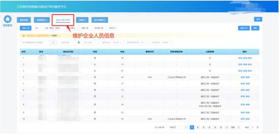 在企業人員頁面中維護企業人員信息。其中,注冊人員信息為系統自動同步,無需企業手動添加。