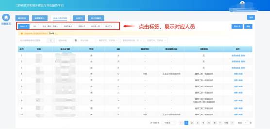 基本信息保存成功后,會出現詳細信息頁面,用于維護當前人員的詳細信息如學歷信息、職稱信息、簡歷信息、注冊資格、技術工人技能證書、個人業績信息等。