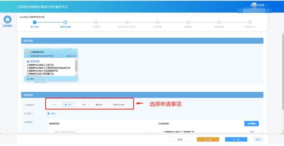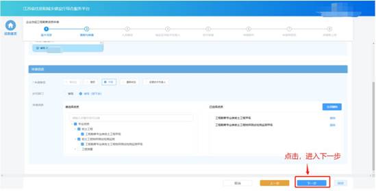 在“資質與申請”環節頁面,企業選擇申請事項以及申請資質。