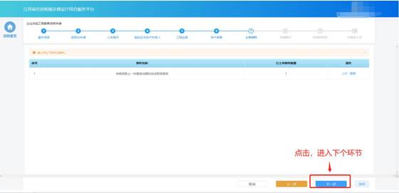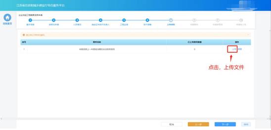 部分申請事項需要企業在申請流程中上傳與本次申請相關的附件,則申報流程會包含“上傳材料”環節。在“上傳材料”環節頁面上傳本次申請要求的附件,上傳完成后點擊“下一步”進入下一個環節。