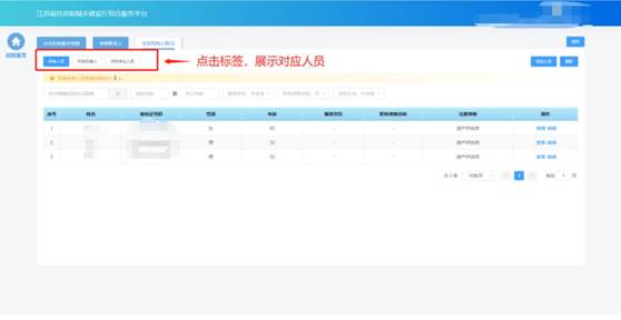 點擊不同人員類型的標簽,可以展示相關的人員