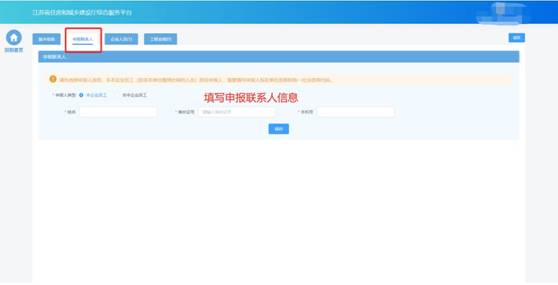 在申報聯系人頁面中填寫申報聯系人信息。