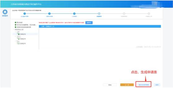 “申報附件”環節頁面展示本次申請相關的附件信息,部分附件信息來自于企業信息維護模塊維護的附件,部分附件來自于申報過程中在“上傳材料”環節上傳的附件。確認附件內容后,點擊“提交生成申請表”則系統自動生成申請表并進入申請表預覽頁面。