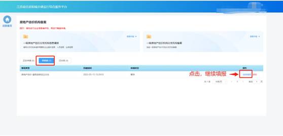 列表記錄中的“繼續填報”可進入申請頁面繼續填報。