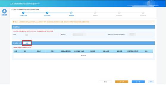 在評估專業人員模塊下點擊“選擇”按鈕選擇評估人員。