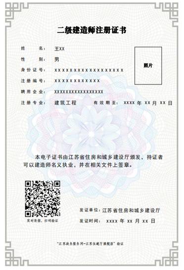根據(jù)《中華人民共和國電子簽名法》規(guī)定,可靠的電子證書具備與同名紙質(zhì)證書相同效力。各地住房城鄉(xiāng)建設(shè)行政主管部門在實(shí)名制、企業(yè)資質(zhì)核準(zhǔn)、工程招投標(biāo)、施工許可、工程質(zhì)量安全監(jiān)督、執(zhí)法監(jiān)督檢查、竣工驗收及備案等管理中應(yīng)當(dāng)認(rèn)可由江蘇省住房和城鄉(xiāng)建設(shè)廳核發(fā)的電子證書。