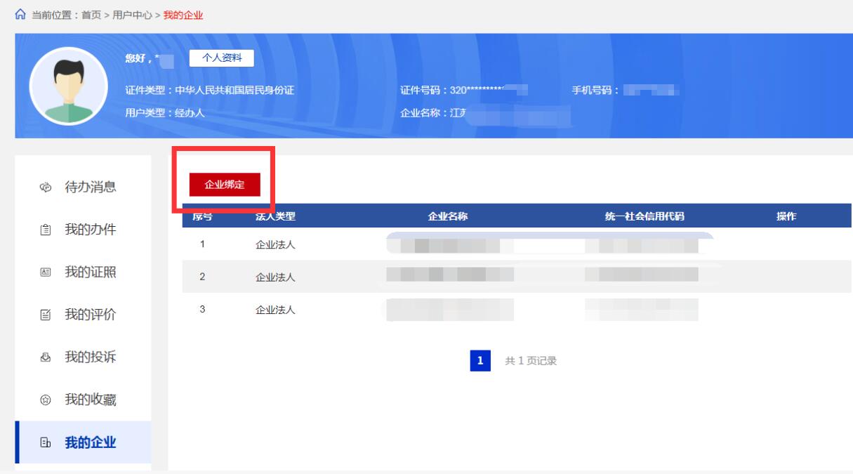 如果在“我的企業”已經顯示企業名稱,那就可以跳過這一步,如果不顯示企業名稱,要進行“企業綁定”。