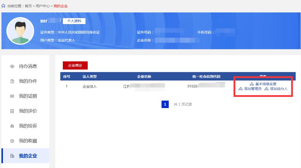輸入企業相關信息以后,即可完成綁定,綁定后就能顯示企業信息。