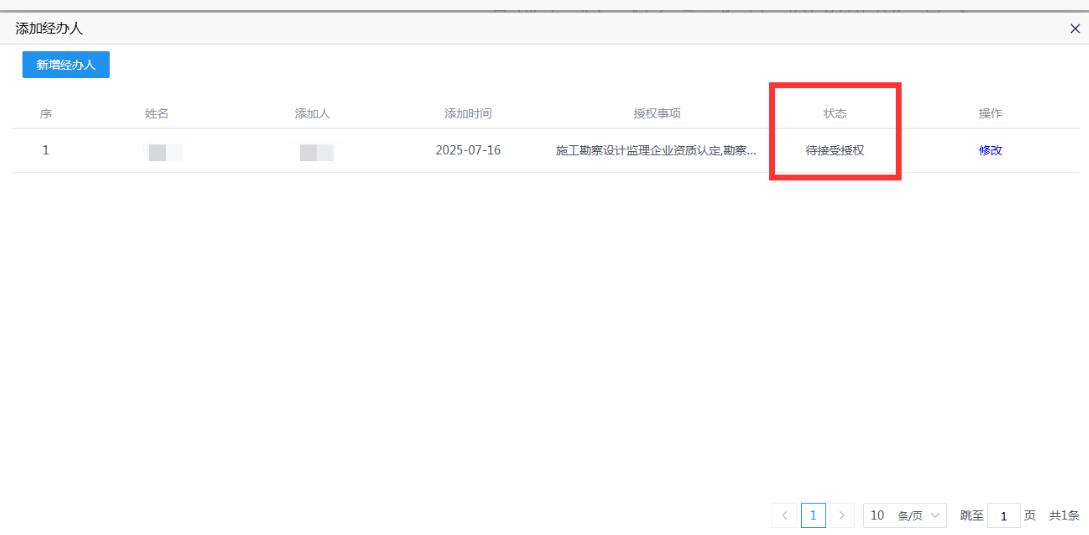登錄經辦人賬號以后,會彈出“提醒”,存在待確認的經辦人身份。