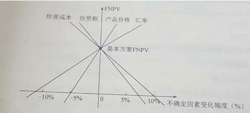 3.對某技術方案的財務凈現值(FNPV)進行單因素敏感性分析,投資額、產品價格、經營成本以及匯率四個因素的敏感性分析如下圖所示,則對財務凈現值指標來說最敏感的因素是()。