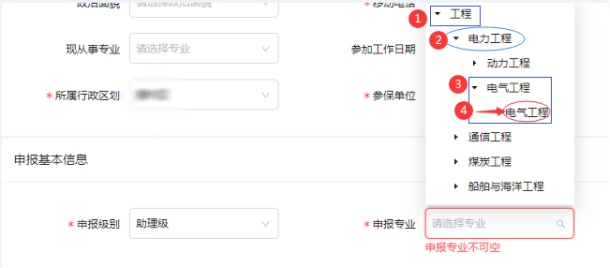 報送受理部門:系統根據申報人單位行政區劃和申報專業,彈出申報人可以申報的受理部門。一般為某地區,某市級機關職稱辦。
