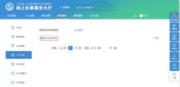 1.1.1.1 操作界面網辦大廳登錄賬號后,在查詢服務里搜索“職稱證書在線查詢”。
