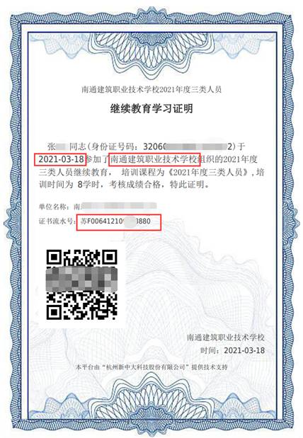 證明文件三:參加南通建校組織的年度8學(xué)時(shí)的安全生產(chǎn)教育培訓(xùn)(三年滿24學(xué)時(shí))的學(xué)習(xí)證明材料。(學(xué)習(xí)完成之后需要在證書到期前將學(xué)習(xí)數(shù)據(jù)導(dǎo)入2.0監(jiān)管平臺(tái))