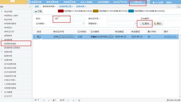 2、進(jìn)入2.0平臺(tái),選擇“三類人員”下的“繼續(xù)教育填報(bào)”,輸入姓名查詢后,點(diǎn)擊繼續(xù)教育記錄填報(bào)