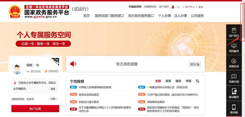 2.實名身份認證登錄成功后,點擊[用戶中心],進入用戶中心頁面。