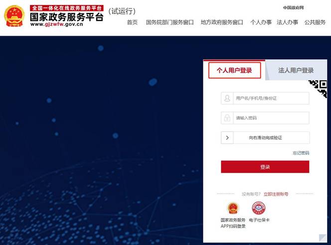 進入登錄界面后,在“個人用戶登錄”頁面中輸入相應的信息,完成賬號登錄。
